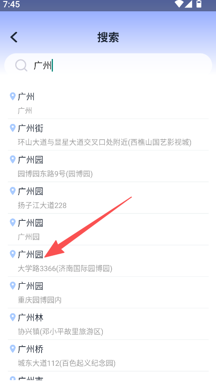 1、搜索功能强大,输入地名后呈现多个相关地点选项,包含详细位置说明,方便用户精准定位目标地点。
