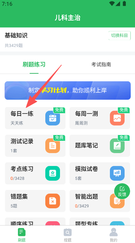 1、进入软件后,在刷题练习板块点击“每日一练”,开启日常刷题。