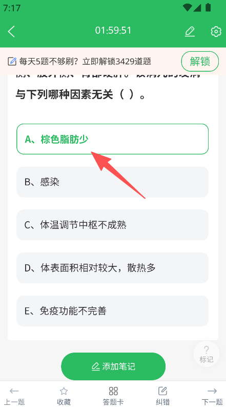 3、在答题界面可做题,还能添加笔记、标记题目,便捷巩固儿科知识点。