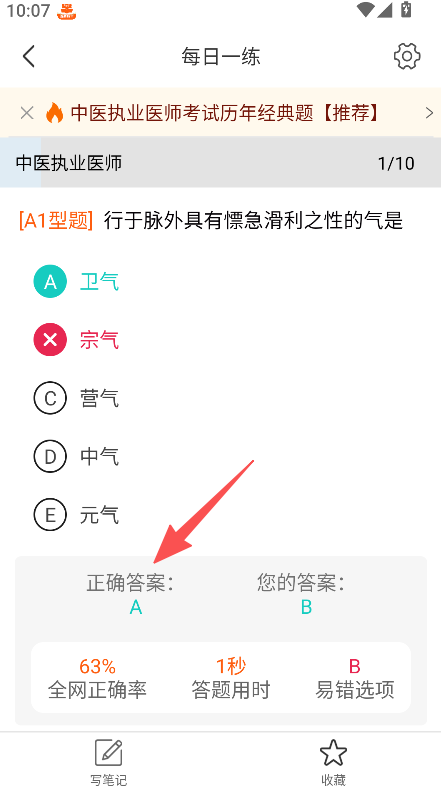 3、进入每日一练,完成题目作答,查看正确答案及全网正确率等数据。
