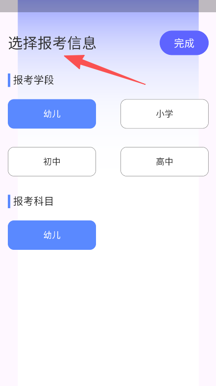 1、提供报考信息选择功能,涵盖幼儿、小学等学段与对应科目,为考生打造个性化备考起点,明确备考方向。