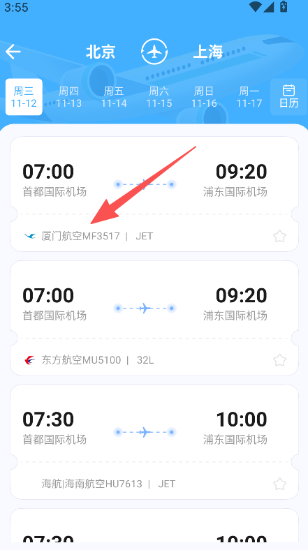 2、航班信息丰富全面,同一出行日期的多趟航班尽数展示,不同航空公司的航班信息详细罗列,用户选择空间大。