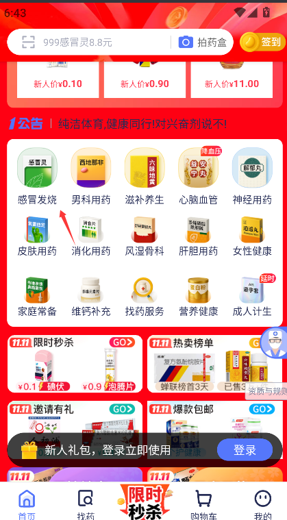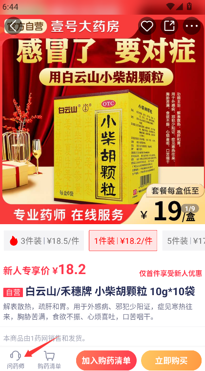 1、通过搜索框输入药品名称或浏览分类找到目标商品,点击进入该药品的详细介绍页面。