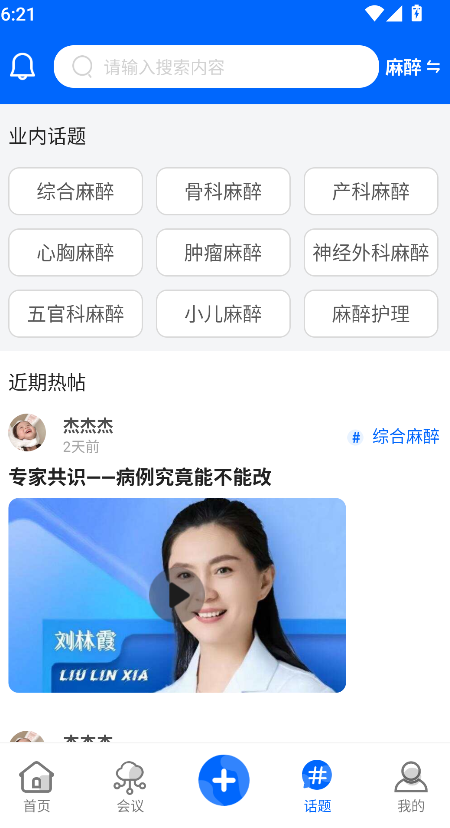 2、浏览按麻醉亚专科划分的多个话题分类列表,根据个人学习或工作需求点击选择目标分类。
