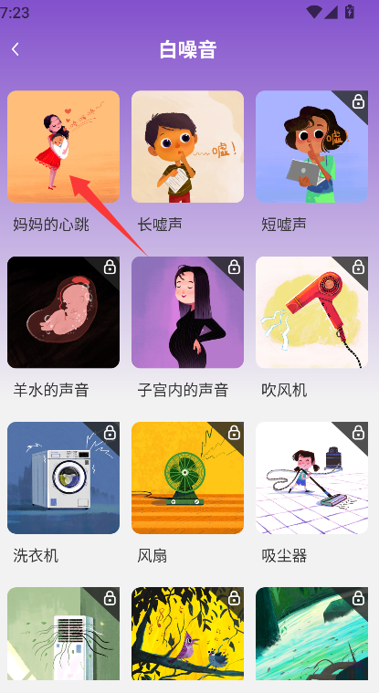 2、浏览如“自然之声”、“城市律动”等不同类型,点击“妈妈的心跳”此具体分类。