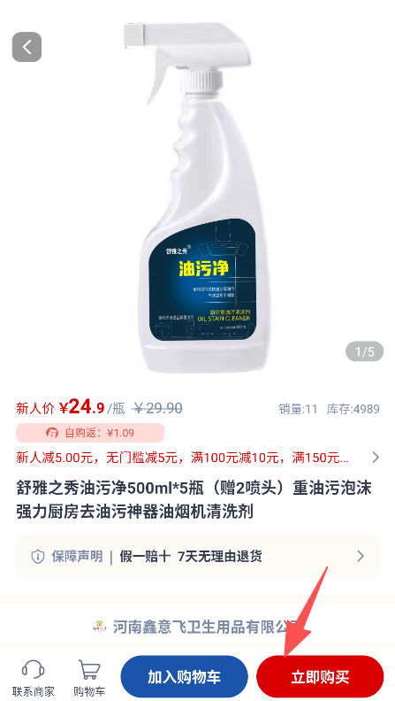 3、在商品详情页,点击立即购买或加入购物车,完成国货商品购买。