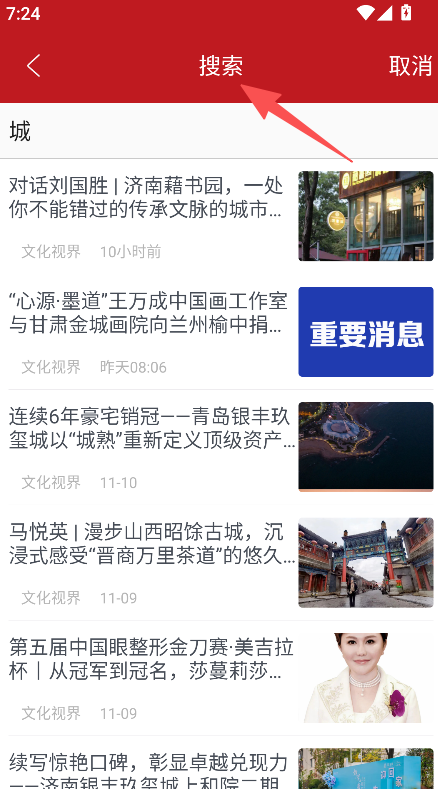 3、点击搜索,输入关键词,查找相关文化资讯。
