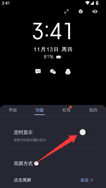 2、找到那个像小月亮似的定时显示开关,轻轻一拨,就像为息屏表演拉开了智能幕布。