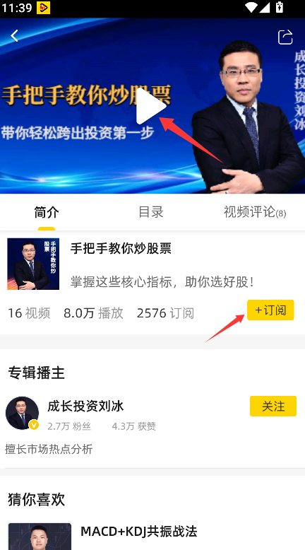 3、进入课程详情页后,点击订阅按钮进行确认,即可开始观看该系列的教学视频内容。