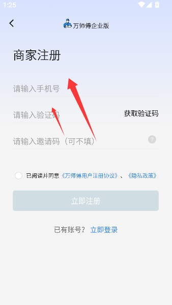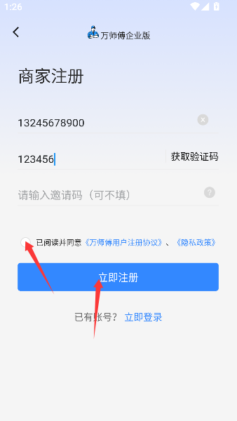 3、仔细阅读并勾选前方的服务协议,然后满怀期待地按下“立即注册”,正式入驻师傅大家庭。