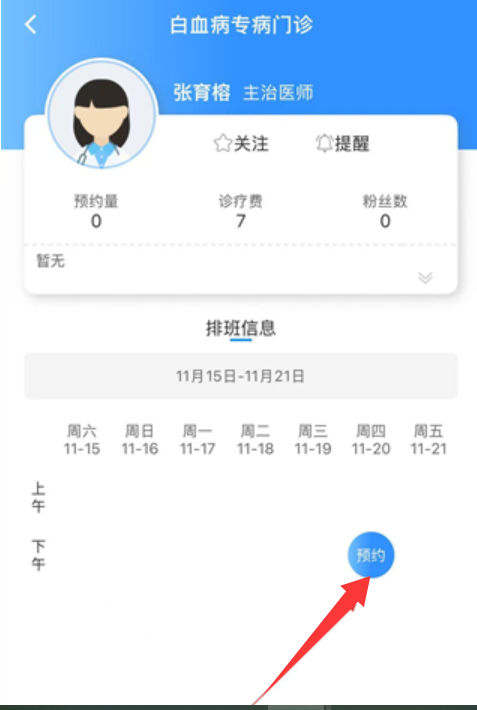 3、从显示有可预约号源的医生列表中选择目标医生,进入其排班详情页点击"预约"按钮完成操作。