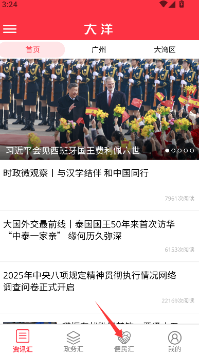 大洋是一款聚焦于广州及粤港澳大湾区的综合性服务平台,集信息获取与生活服务于一体。该平台以本地新闻资讯和政务动态为核心内容,辅以多样化的便民工具,构建覆盖多领域的一站式服务环境。