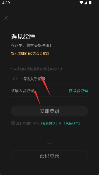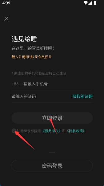3、仔细阅读并勾选前方的隐私协议,最后满怀期待地按下登录键,正式开启安眠之旅。