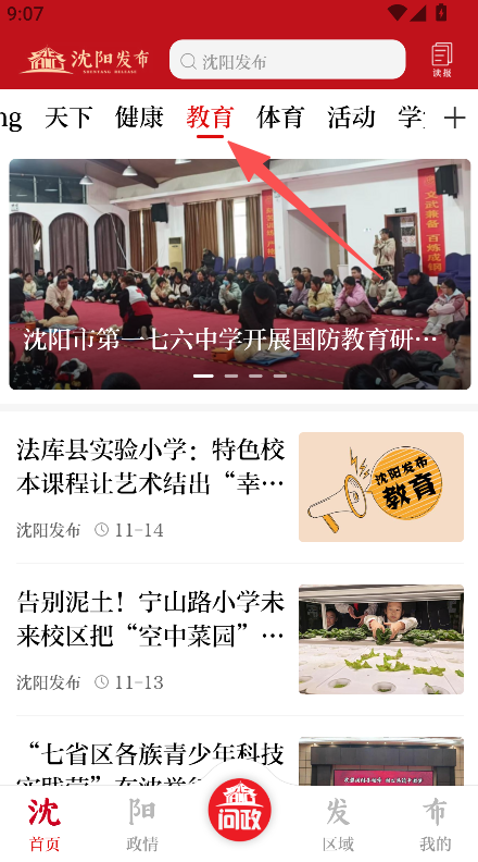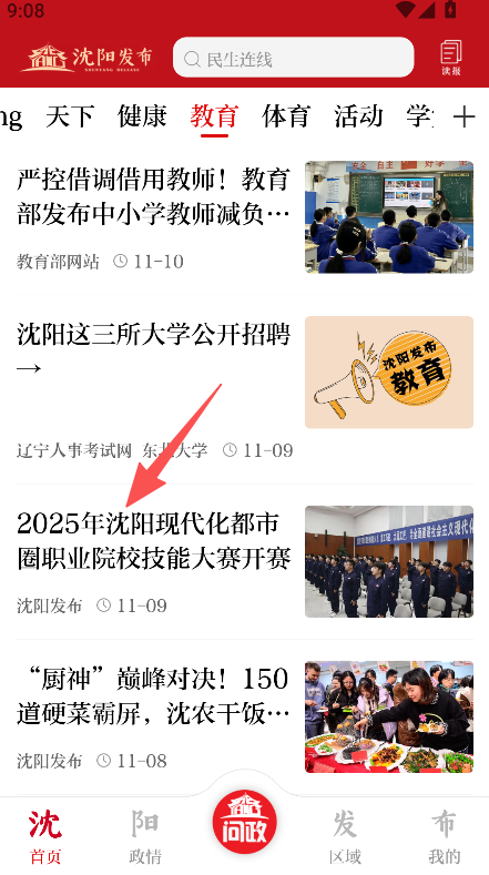 1、打开软件,点击教育板块,浏览沈阳本地教育资讯。