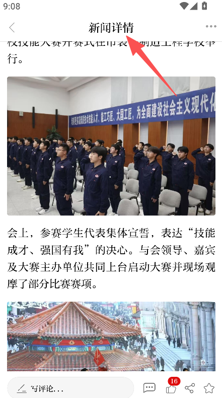 2、选择资讯条目,如职业院校技能大赛新闻,进入详情页。