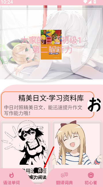 2、切换至听力阅读功能模块,选择对应难度的素材,聆听标准发音、阅读日文篇章,同步提升两项能力。