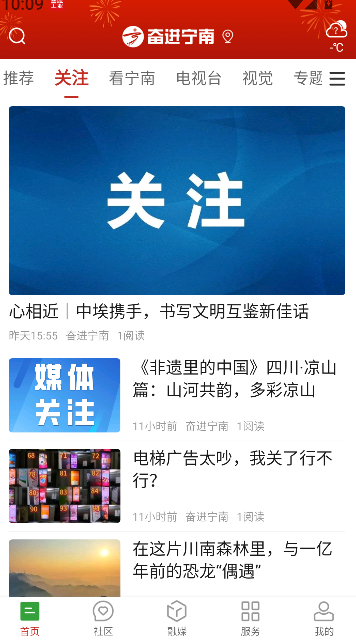 1、打开奋进宁南软件进入首页,首页展示本地最新时政、民生等新闻资讯,直接浏览即可关注各类热点动态。