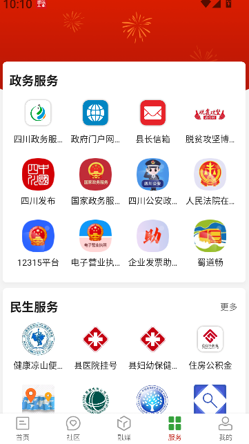 3、进入软件的社区便民服务板块,可找到医院挂号、住房公积金查询等功能入口,按提示操作即可办理相关事项。