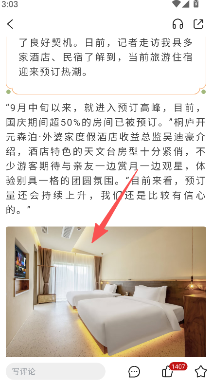 2、选择资讯条目,如旅游住宿新闻,进入详情页查看内容。