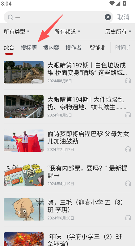 3、使用搜索功能,搜标题或内容,查找桐庐相关资讯。