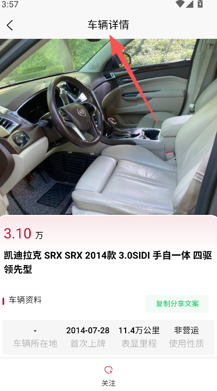 2、拥有车辆详情功能,可查看车辆图片、首次上牌、里程等信息,全面了解车辆状况,购车参考性强。