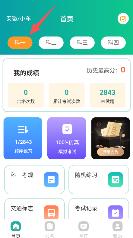 1、打开软件,选择科一,进入练习板块。