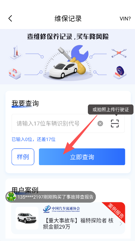 1、具备维保记录查询功能,输入VIN码可查维修保养记录,呈现里程等车况,助力了解二手车维保历史。