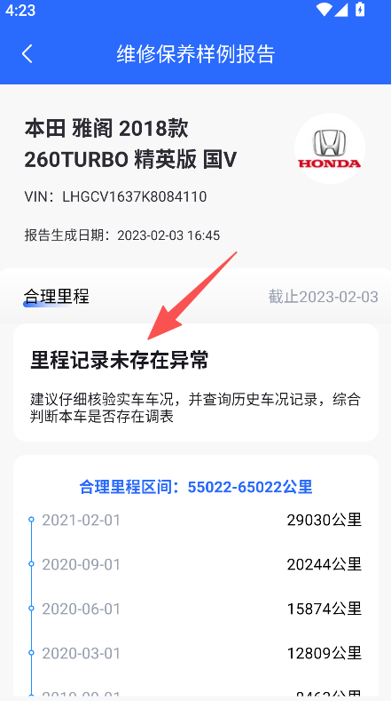 2、报告呈现直观,里程记录、合理区间等信息明确,车况判断一目了然,查询结果易读。