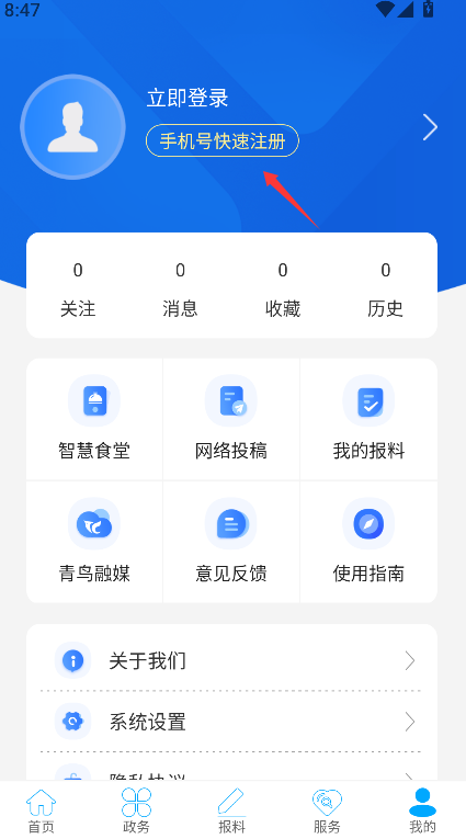 1、找到并点击底部导航栏中的"我的"选项,页面将跳转至个人中心。