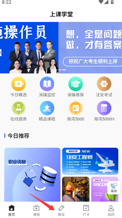 1、在页面底部导航栏或显眼位置找到并点击“题库”功能入口。