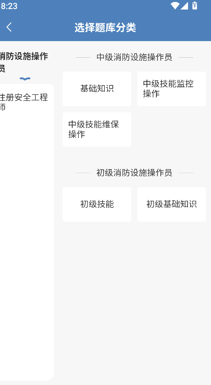 2、根据备考需要,在显示的考试分类列表中选择具体的目标考试类别。