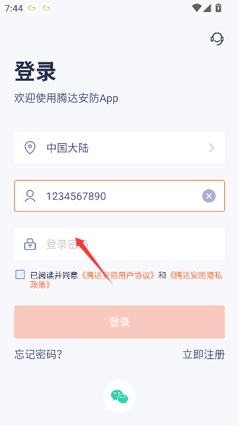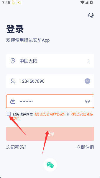 3、最后勾选同意隐私条款,并轻点登录按钮,即可正式开启守护家园的远程视野大门。