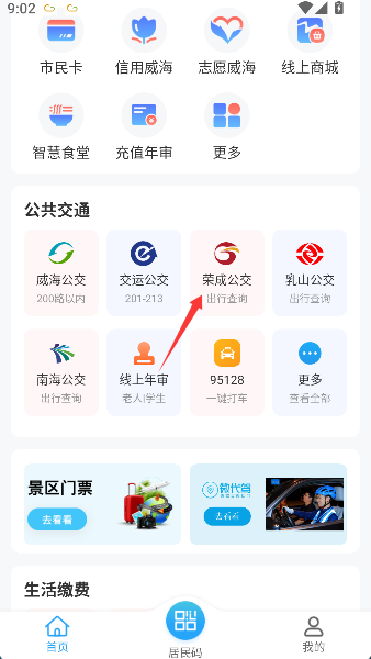 1、在软件首页找到并轻轻戳开"容成公交"服务,犹如推开一扇通往城市智慧交通网络的便捷大门。