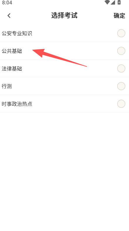 1、科目选择功能,可选择公安专业知识、公共基础等考试科目,明确备考科目,开启对应学习。
