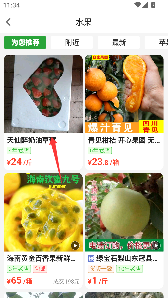 1、在首页点击“水果”分类,仿佛瞬间跨入一个香气四溢的虚拟果园,各色果品正迎着阳光向你招手。