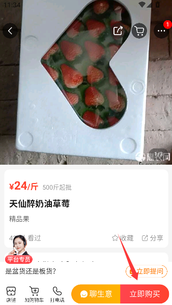 3、点开商品页果断按下“立即购买”,就像向田间农场主发出闪电订单,新鲜直达的甜蜜即将飞奔而来。