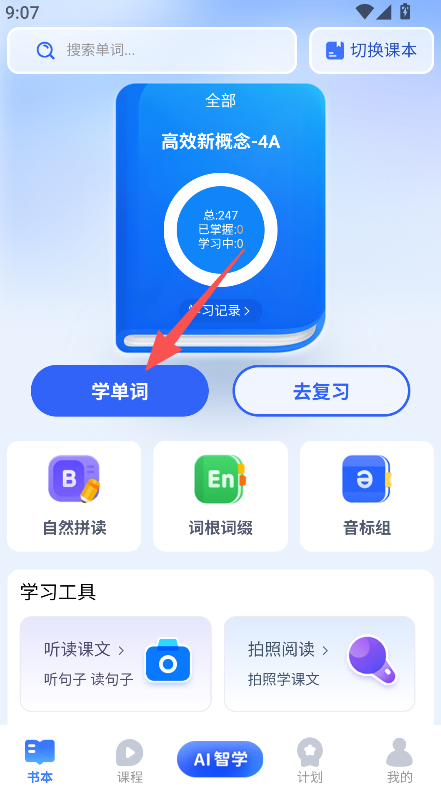 1、教材适配性强,适配高效新概念等教材,学单词板块清晰呈现单词总量、掌握情况,学习目标明确,英语学习有体系。