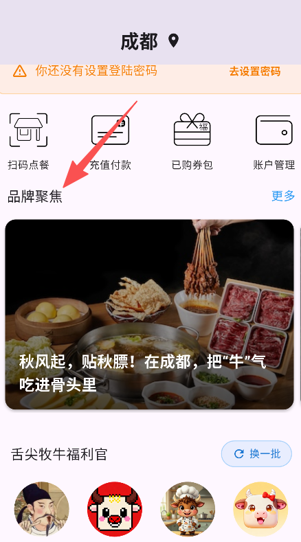 3、服务功能实用,扫码点餐、充值付款等功能满足餐饮消费需求,品牌聚焦又传递美食文化,服务与文化双重价值。