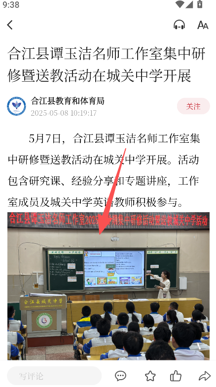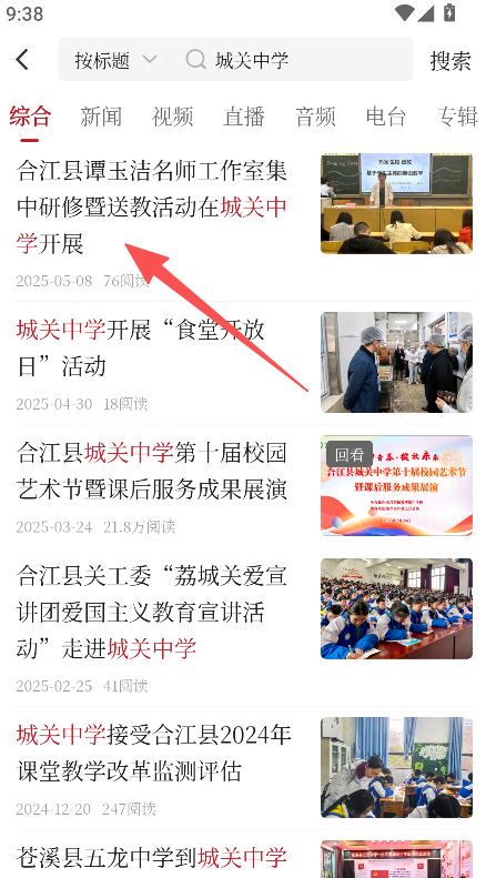 2、新闻浏览功能,在综合板块查看本地新闻(如教研、活动),了解合江本地动态。