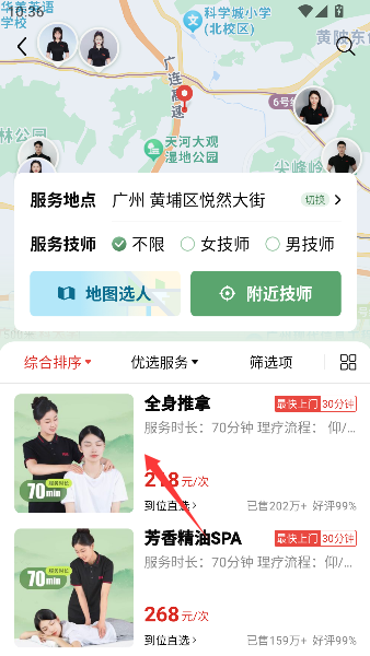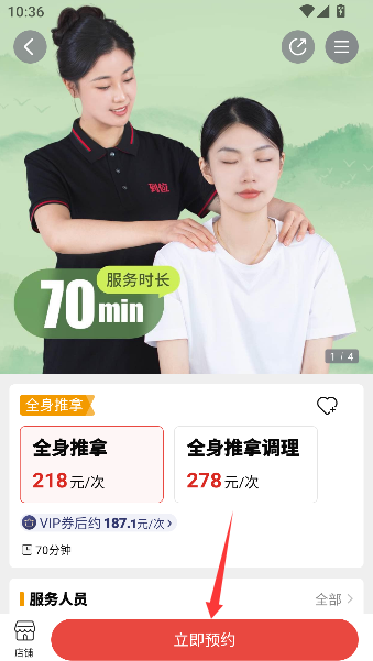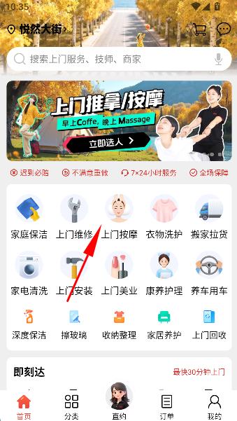 1、轻轻一点“上门按摩”,仿佛打开一道神奇的传送门,专业理疗师正带着工具箱朝您家门走来。