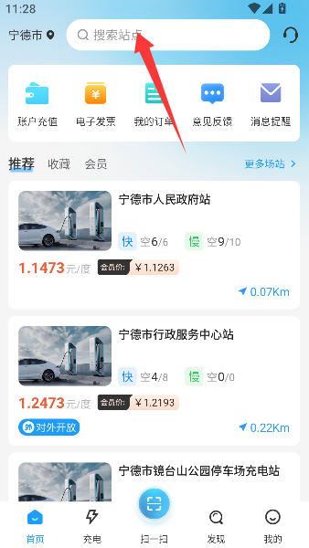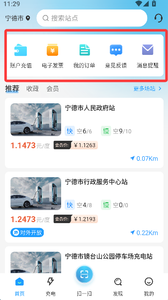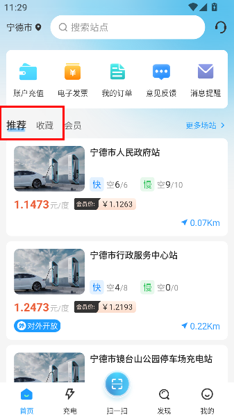 3、查看推荐和收藏站点功能,如同拥有贴心导航员,常去的“能量驿站”和系统精选好桩一目了然。
