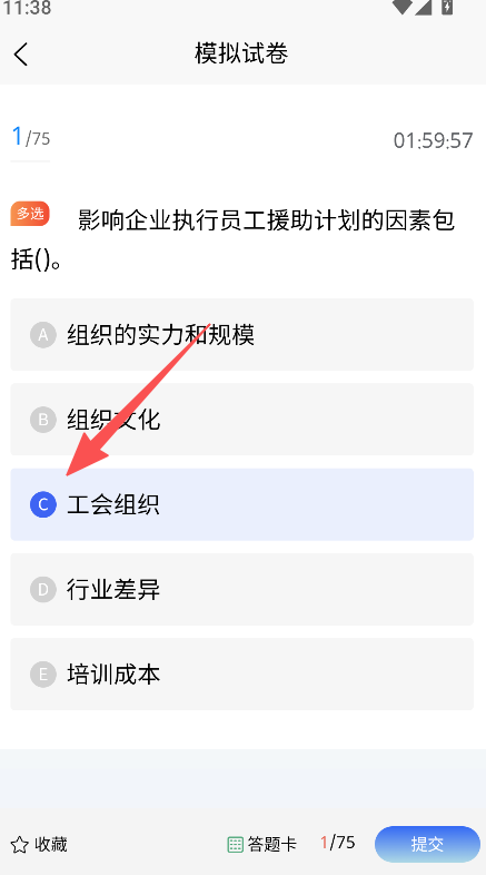 3、进入试卷页面,作答题目(如多选题),完成考试练习。