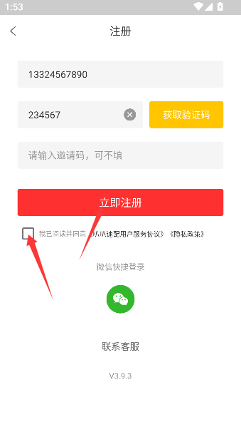 3、勾选隐私政策并点击立即注册,就像在数字化合约上郑重签下名字,正式成为智慧物流网络的新成员。