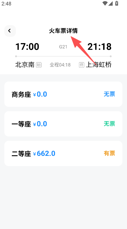 1、具备高铁特价票查询功能,输入出发地、目的地及日期后,一键获取对应车次的特价票时刻、票价、余票等全面信息。