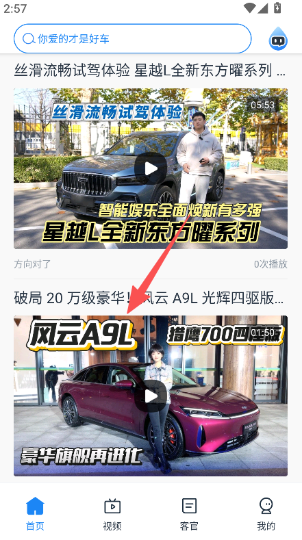 1、打开软件,进入资讯或选车板块,浏览汽车相关内容。