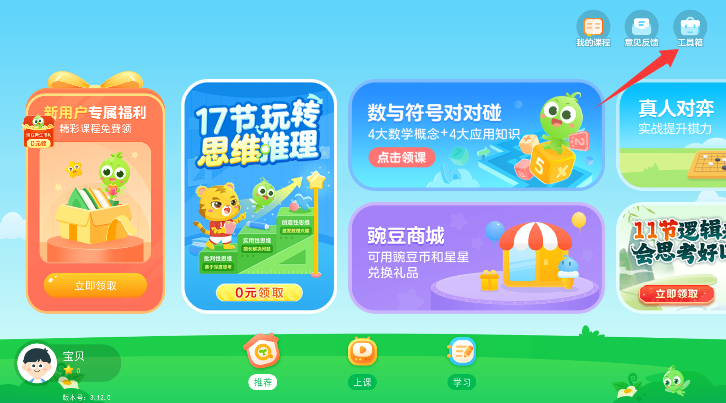 1、在应用首页界面右上方,定位并轻触形如工具箱的图标按钮。