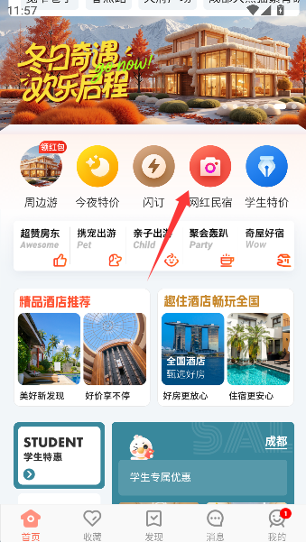 1、在《木鸟民宿》的首页大胆点开“网红民宿”入口,一场充满未知惊喜的住宿探险之旅就此拉开帷幕。