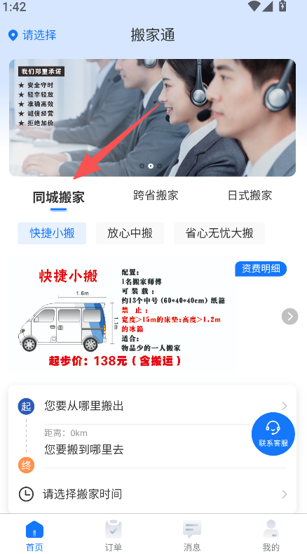 1、聚焦搬家服务,整合同城、跨省、日式搬家类型,还有不同搬家套餐,满足用户多样搬家需求,让搬家选择更丰富。