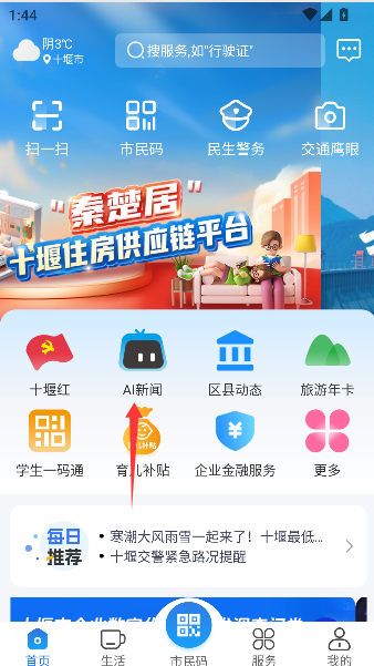 1、轻点首页的“AI新闻”入口,仿佛打开一张本地的寻宝图。