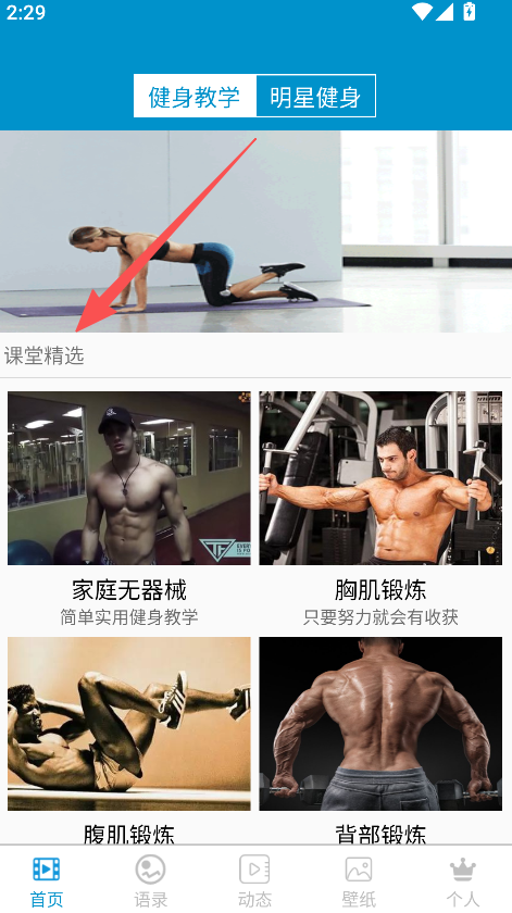 2、分类细致,多部位锻炼与明星健身板块划分明确,用户选择空间大,健身学习更具针对性。